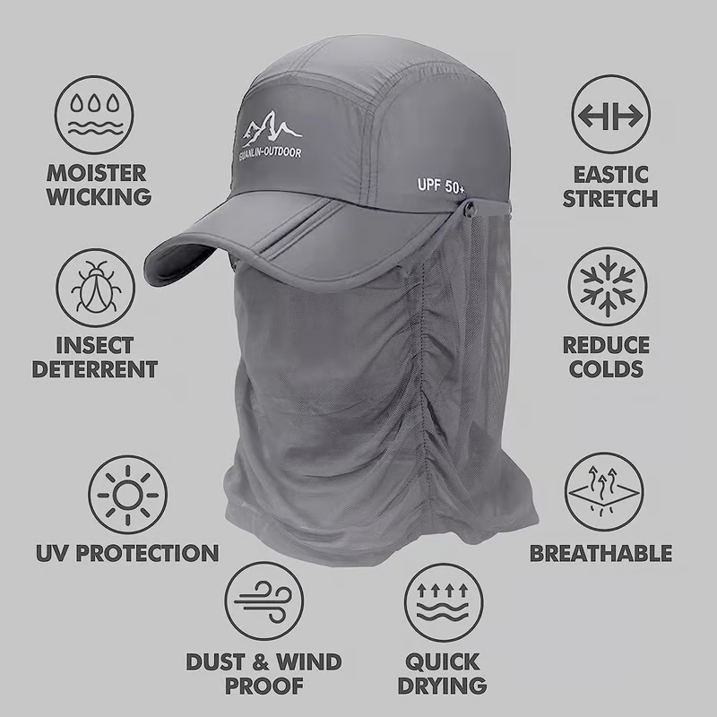 All-in-One Outdoor Hat – Foldable Brim, Neck Cover & Cool Comfort for Any Adventure!